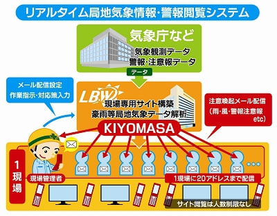 安全建設気象モバイルKIYOMASAでは、建設現場専用のPC・携帯気象情報サイトを構築いたします。