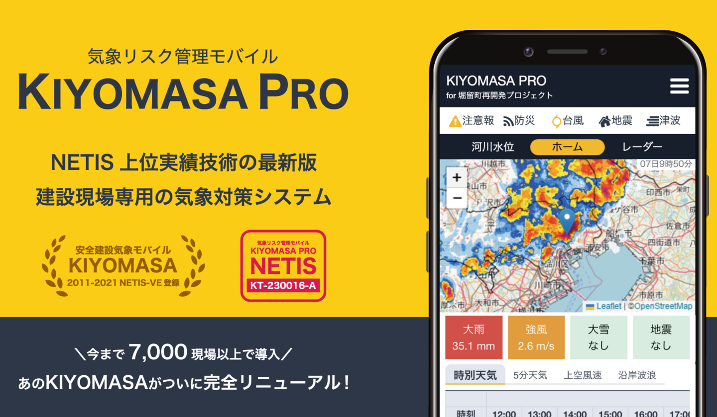 建設現場専用の気象情報サイトとアラートメール機能を備えた