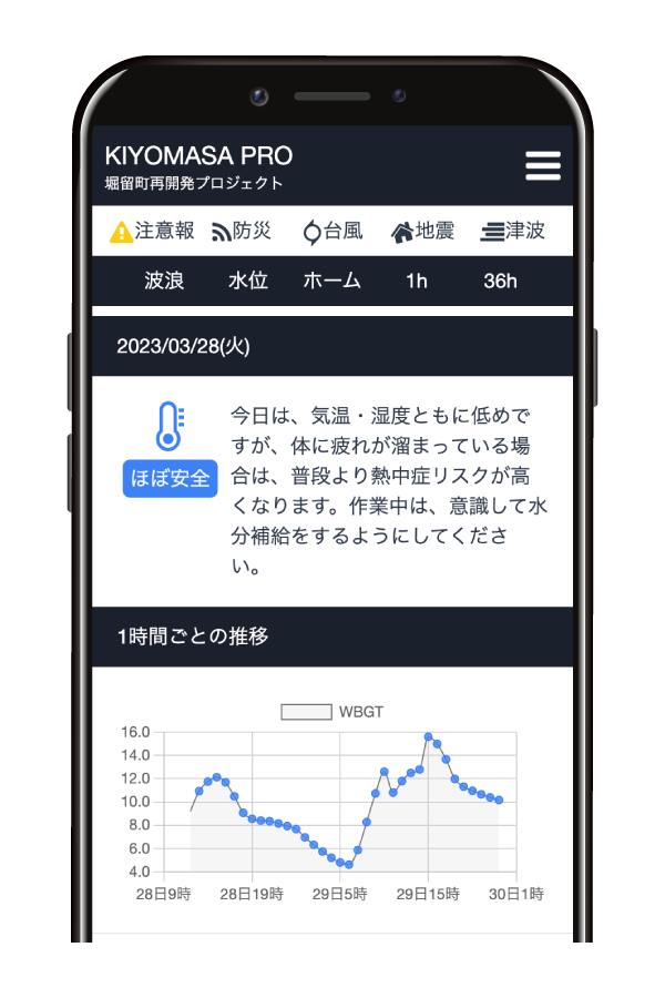 また、現場のための熱中症予報コメントも発表。どのような対策を講じればよいのか記載されているため、朝礼・昼礼時の熱中症予防アクションとして活用頂けます。
