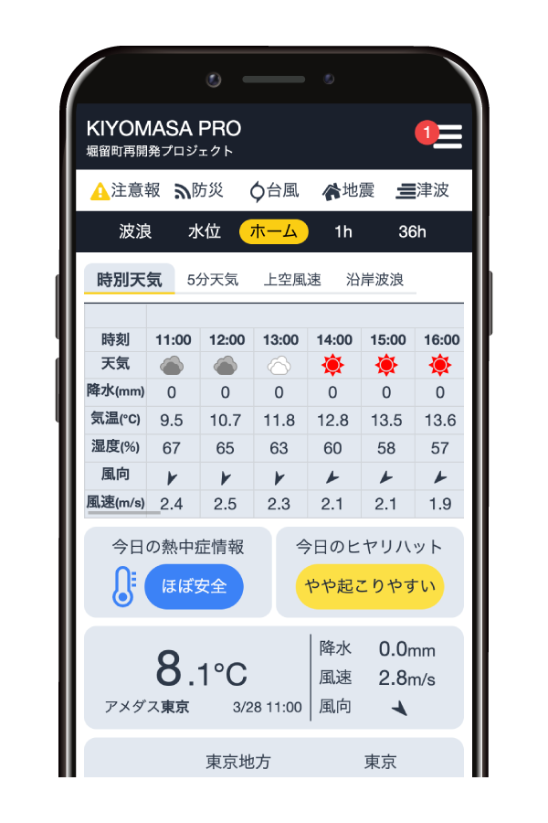 予報発表時間を延長したことで、朝礼時に天気を確認する際に、翌日の夕方まで、1時間ごとの現場ピンポイントの予測を把握することができるようになりました。