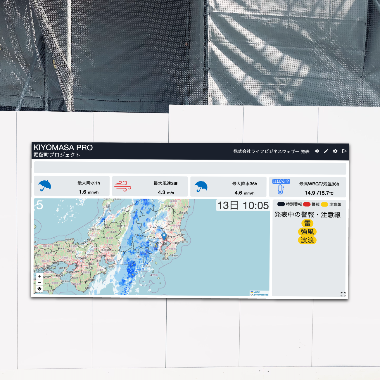 現場にて常時、気象・防災情報を表示させることができます。